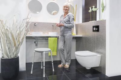 Banco de duche Dot com disco. Disponível com disco giratório integrado para facilitar as transferências.